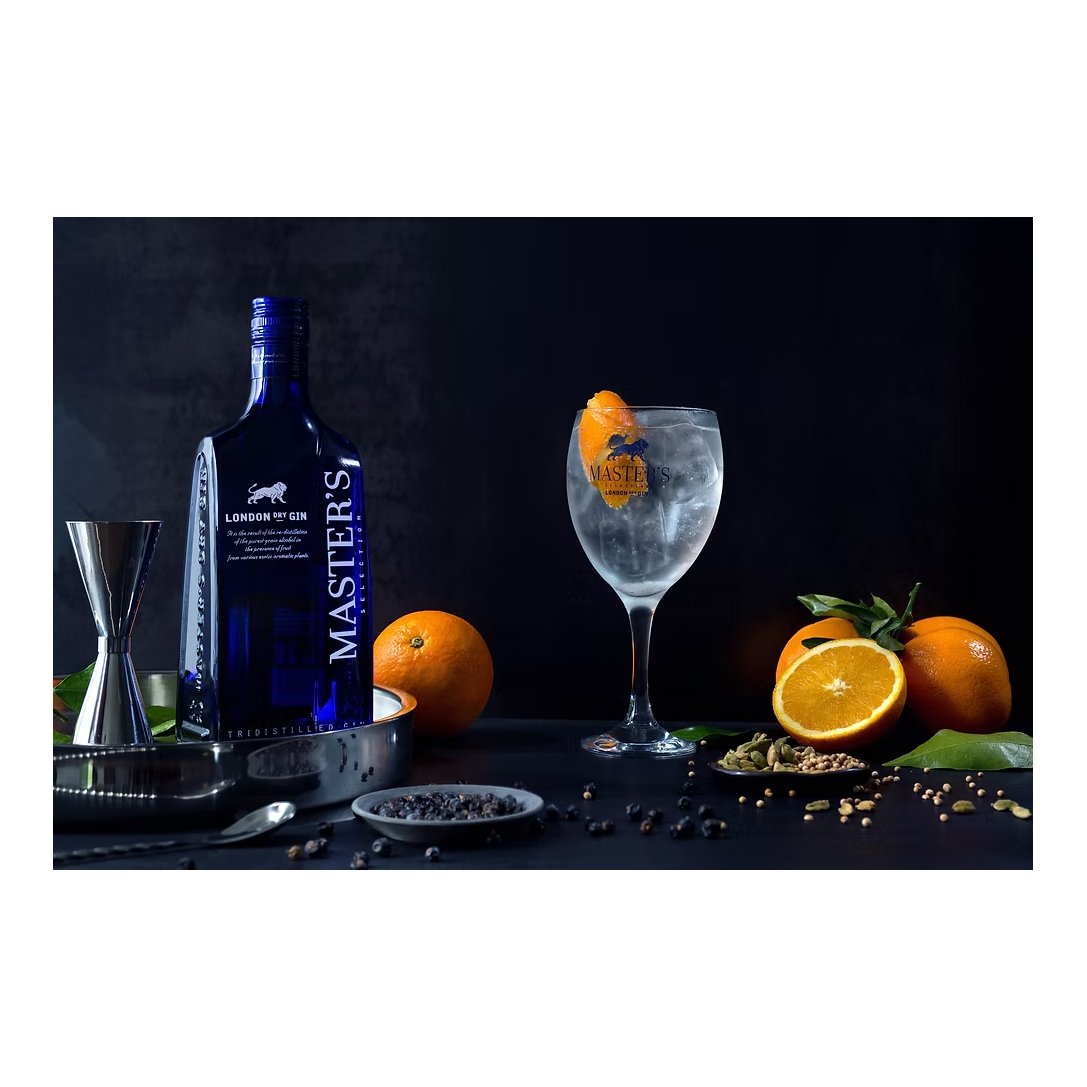 Sastav: Master’s Gin je rezultat višestoljetne tradicije, obiteljske destilerije smještene 50 km jugozapadno od Barcelone. Njegov sastav je savršeno uravnotežen, s dominantnim citrusnim notama koje nikada ne blijede zahvaljujući posebnom procesu maceracije.