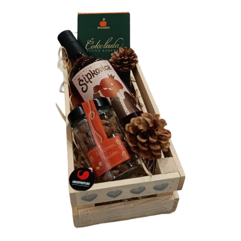Svaka košara donosi jedinstvenu kombinaciju vrhunskih proizvoda – od izuzetnih pića, aromatičnih slastica i premium sušenog voća do ručno biranih gurmanskih delicija.