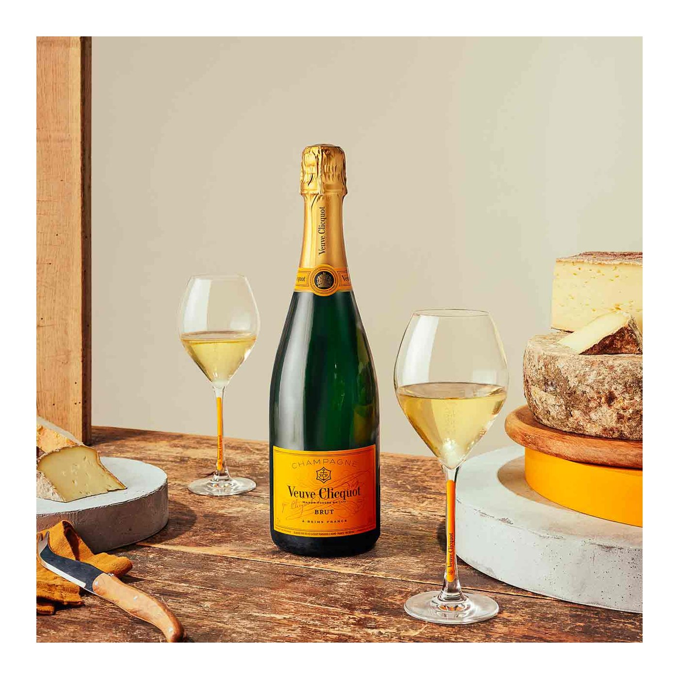 Veuve Clicquot Brut ističe se svojom savršenom ravnotežom snage, aromatskog intenziteta, svježine i nježnosti. Njegova prepoznatljiva kvaliteta proizlazi iz posebne mješavine, gdje dominantni crni pinot pruža strukturu, pinot meunier zaokružuje okus, dok chardonnay dodaje eleganciju.