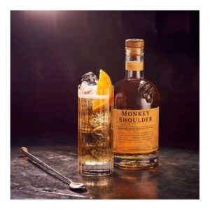 Monkey Shoulder , Škotska, je trostruki slad s glatkim karakterom. Škotska se bavi viskijem, a regija Speyside puna je destilerija, a svaka proizvodi svoj vlastiti izbor slada.