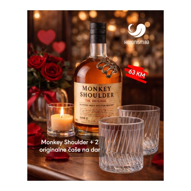 Monkey Shoulder , Škotska, je trostruki slad s glatkim karakterom. Škotska se bavi viskijem, a regija Speyside puna je destilerija, a svaka proizvodi svoj vlastiti izbor slada.